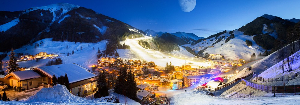 Intermediates have a massive choice of sunny cruising, ski tours and glorious, long runs through trees. Good skiers with thighs of steel can probably do the whole circuit in a day, but it's a challenge! Saalbach is top for snowboarders, with fun parks, wonderful off-piste and a sympathetic lift system. The nursery slopes in Saalbach are located right beside the main street of the town so mummies and daddies can train their prodigious offspring without having to leave the welcoming confines of the shopping or drinking streets nearby. For the advanced skiier there is a two-mile long (3km) expert mogul descent on the north facing Zwolferkogel, and more than 60 miles (97km) of off-piste terrain. You can see the best ski and snowboard talent on display from the local schools every Wednesday and if you didn´t get enough of the pistes during the day, on Tuesdays and Thursdays you can enjoy night-time skiing on the floodlit slope.