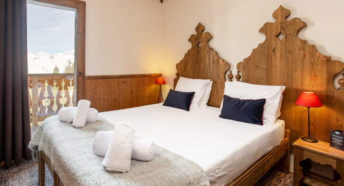 This chalet apartment in snowsure Arc 2000 boasts all en-suite rooms, wonderful Mount Blanc views, easy access to skiing and complimentary use of the nearby wellness centre.