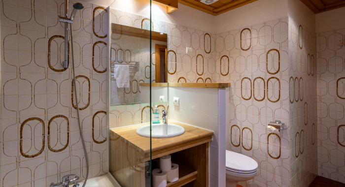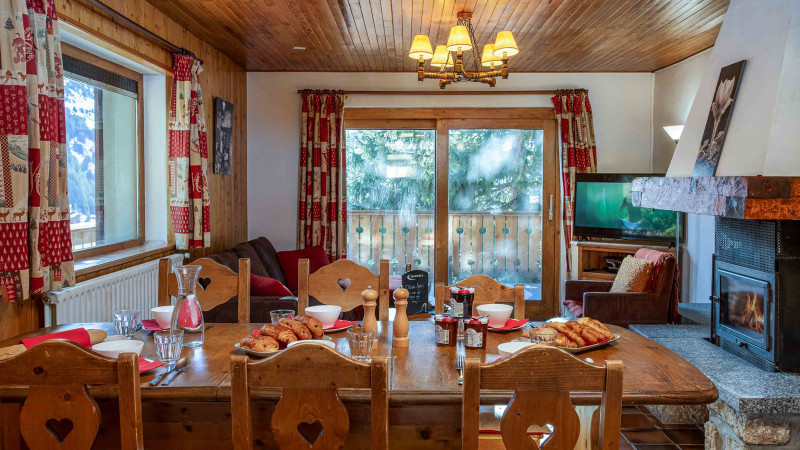 Chalet Andre is a warm and welcoming Savoyard chalet with rustic alpine character, a spacious living area with a stone fireplace, and all bedrooms boasting en-suite bathrooms.